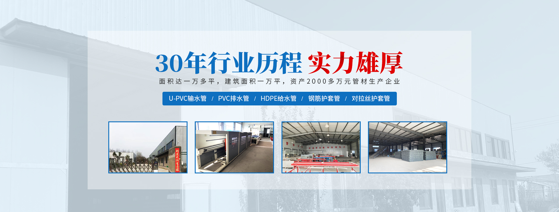安陽(yáng)市祝豐塑化有限公司坐落在滑縣工業(yè)園區(qū),東臨大廣高速,西臨京珠高速,是鄭州、鶴壁、安陽(yáng)、濮陽(yáng)四個(gè)城市的輸紐,交通便利、環(huán)境優(yōu)美。 公司始建于八十年代,經(jīng)過(guò)二十余年的艱辛創(chuàng)業(yè),規(guī)模不斷壯大,由十多萬(wàn)元資產(chǎn)的小廠,發(fā)展到現(xiàn)占地面積達(dá)一萬(wàn)多平,建筑面積一萬(wàn)平,資產(chǎn)2000多萬(wàn)元管材生產(chǎn)企業(yè)。公司生產(chǎn)PVC-U、PVC排水管、HDPE給水管、鋼筋護(hù)套管管道通訊管材等產(chǎn)品,廣泛用于農(nóng)田節(jié)水、高山引水、人畜用水、建筑、電力通訊等多種用途,品種齊全。為了滿足用戶需求,可承攬各種給水、節(jié)水、灌溉工程?!白XS塑化”憑借強(qiáng)勁的實(shí)力,優(yōu)良的管理水平。“以質(zhì)量求生存,以信譽(yù)求發(fā)展”的原則全力以赴和大家共同塑造美好未來(lái)。..